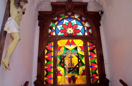 La Casa-Convento, antiguo palacete privado, posee un sorprendente patio interior profusamente decorado con motivos arabescos, así como una biblioteca, mobiliario y ajuares de los antiguos propietarios. La antigua sala de baile hoy hace funciones de capilla dedicada a la oración, que conserva grecas y pinturas en el techo, todo ello propio de este estilo modernista. El Palacete y actual Casa – Convento está declarado de Bien de Interés Cultural por la Región de Murcia.