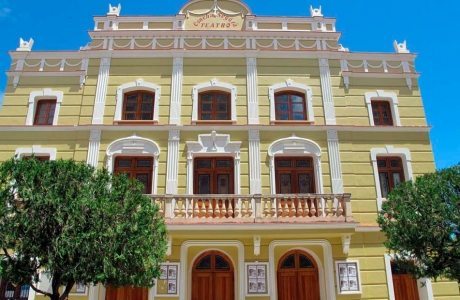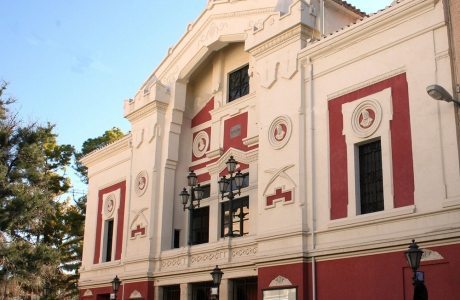 Construido en 1883 por el arquitecto Justo Millán Espinosa en estilo ecléctico, su fachada juego con rasgos orientales y bizantinos. La bicromía, las farolas de hierro y los medallones con rostros de autores teatrales le otorgan un aspecto singular. En el interior, el techo y el telón de boca se decoran con pinturas alegóricas a las musas y retratos de dramaturgos y actores, obra de Manuel de Sanmiguel. Tras la profunda restauración en 1990, el teatro vuelve a brillar con todo su esplendor.